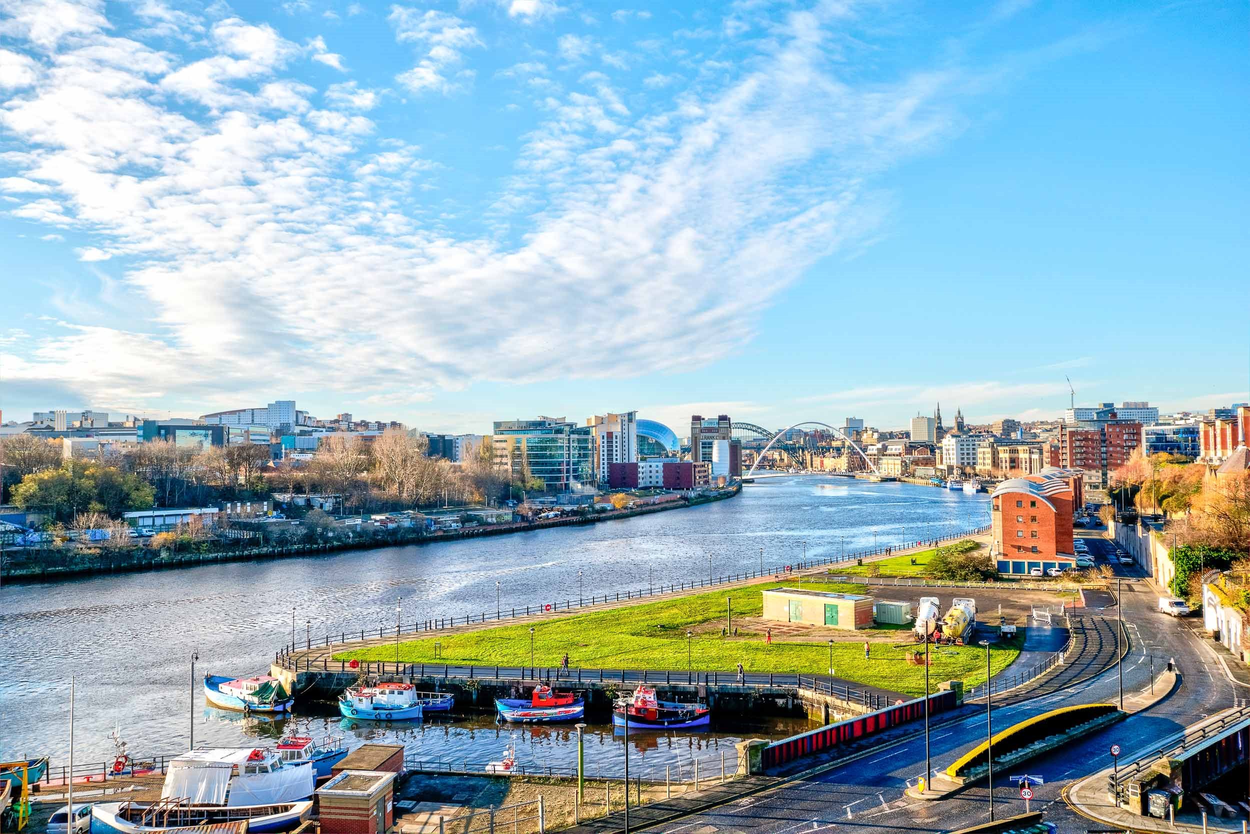 Door to the balcony with views of the River Tyne, Millennium and Tyne Bridge.