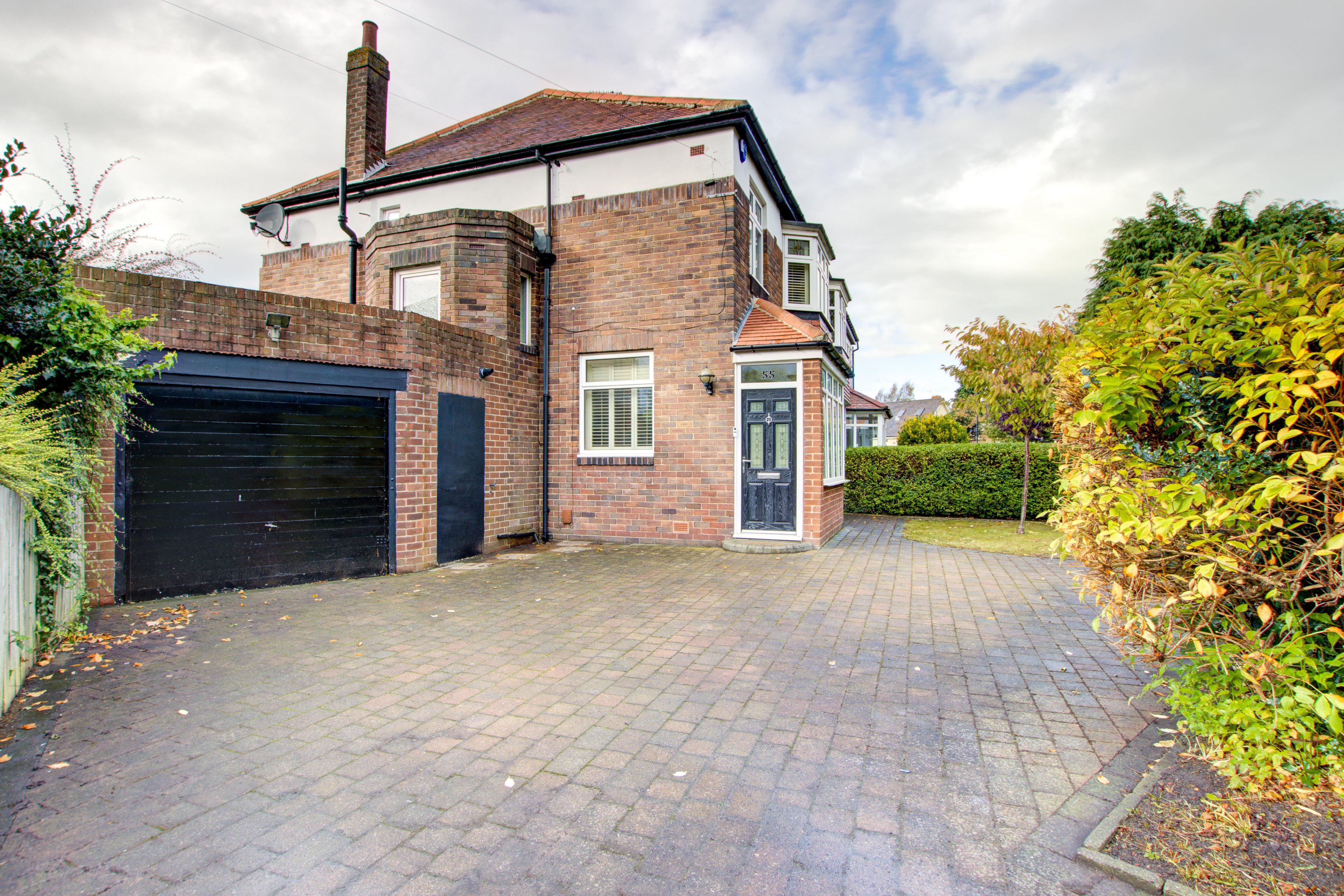 Lawn, block paved driveway and hard standing.