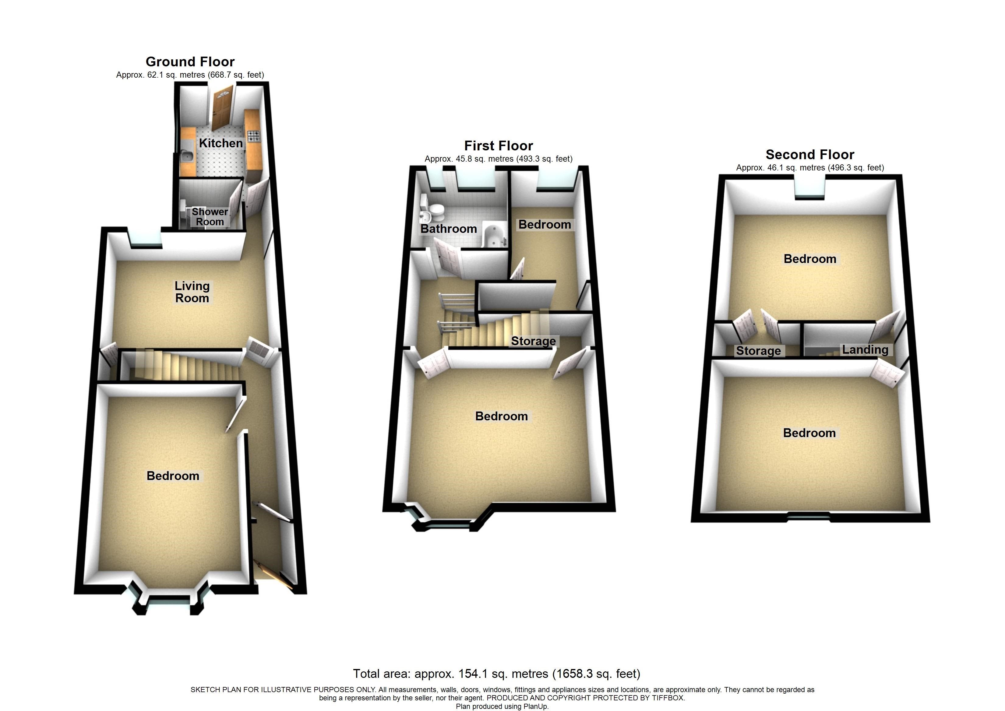 The accommodation on offer comprises; Entrance into the hallway, providing access to the living room, kitchen, bedroom one, and a shower room. Stairs lead to the first floor, where there are two more bedrooms and a bathroom. A further staircase leads to the second floor, which offers two additional bedrooms and built-in storage.