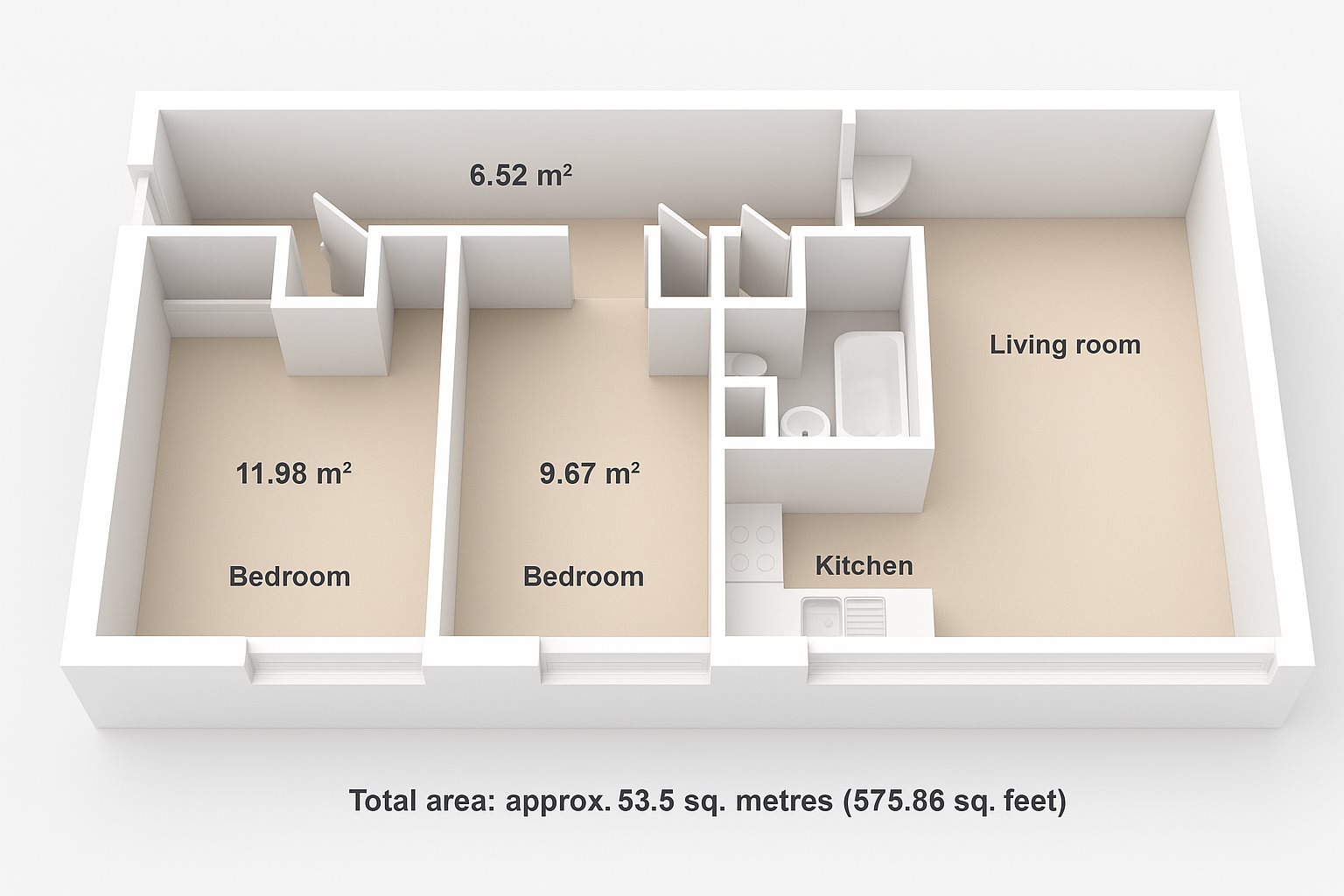 The accommodation on offer comprises; Communal entrance into the building, stairs to the first floor, entrance into flat, hallway leading to an open plan living room and kitchen, the apartment also has two bedrooms and a shower room.